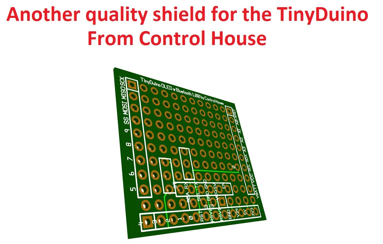 Features In case you would rather use a Pro Mini in place of the TinyDuino, this board allows the shields produced by Control House to mount. · Small size just .25" taller than the TinyDuino terminal shield. Actual size - 1.45"H x 1.365"W · Through hole technology |